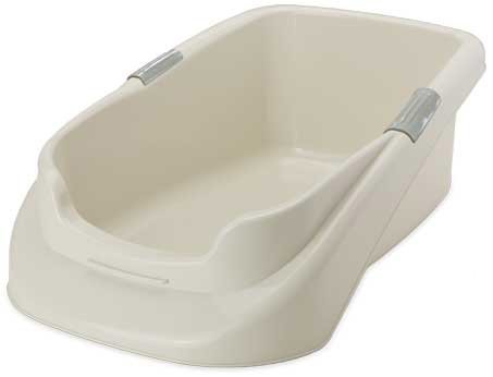 The Nature’s Miracle High-Sided Litter Box, can be considered the Cadillac of litter boxes for cats with arthritis. The best thing about this litter box is that three of the inner sides are 11 inches tall. However, the front side that the cat walks into drops all the way down to about 3 inches. So, this is the perfect litter box if you’re dealing with your cat digging to “do their business”. There is still a chance of the litter spilling over the front of the litter box, but the other sides hold it in well. This litter box also has molded handles and was designed in a way that the front of the box acts like a spout. Because of this, it’s very easy to pour litter out of the box when you’re changing it.